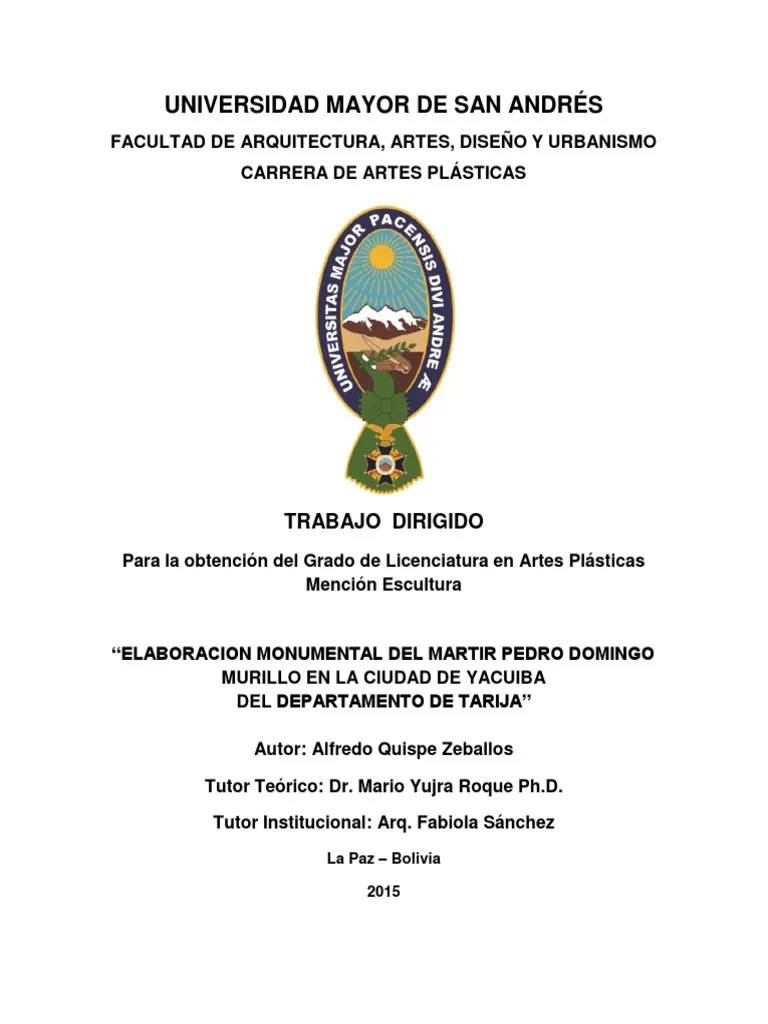 El campus virtual de la facultad de arquitectura, artes, diseño y urbanismo,. En mis primeros años he tenido la influencia del indigenismo, cuando pintaba acuarela, después pasé a hacer trabajos en tinta, hice más montañas, Mayor información carrera de artes plásticas y diseño grafico, calle 0 de obrajes teléfono 2782368 Y posgrado diseñando la historia. Inicio de la prueba de suficiencia academica.